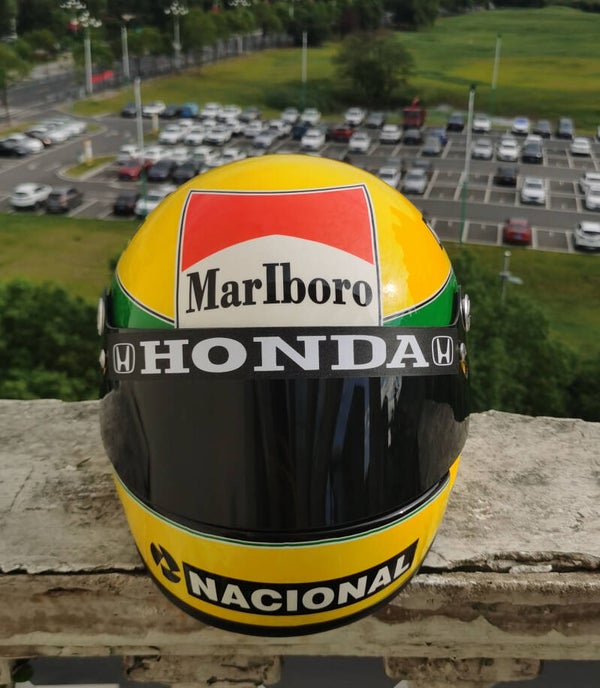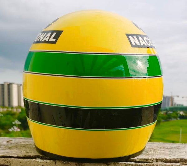 Based on an ultra realistic Helmet design, this full scale 1:1 helmet is a classic from the Triple world champion described as the greatest driver of all time.