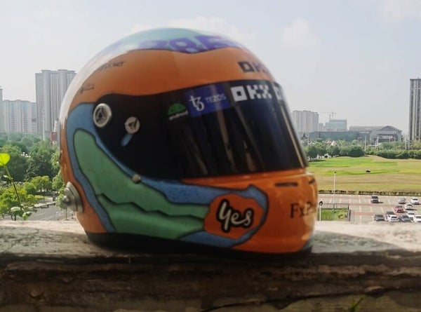 The extremely famous honey Badger helmet from 2022 - In full scale with Hans Anchors and dark visor this presentation helmet is a must have for formula 1 fans worldwide!