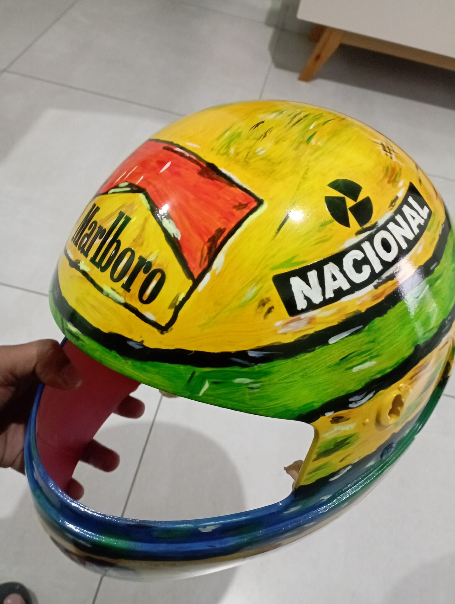 Once the design is complete, the helmet is signed as a mark of authenticity and pride. To protect the artwork and ensure a lasting shine, we apply a triple layer of high-quality acrylic varnish. This final step not only enhances the helmet's appearance but also provides essential protection against the elements.